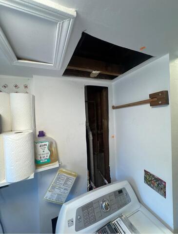 Drywall Doctor repair technicians were called in to get this homeowner's laundry room put back together after having work done that led to big holes being cut out of the drywall. By the end of the repair, it looked good as new!