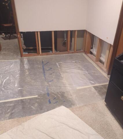 Drywall Doctor repaired the home in this Prairie Village home after flooding damaged their basement wall.