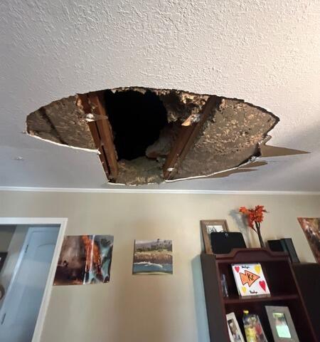 Drywall Doctor came in to repair the hole in this customer's ceiling. We repaired, smoothed and the ceiling is ready for paint now!