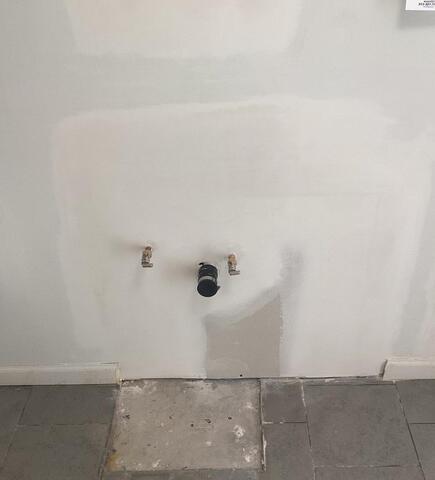 Drywall Doctor repaired the wall in this customer's home after they had plumbing work completed. After the repair was completed, the wall was left perfectly smooth and ready for paint!
