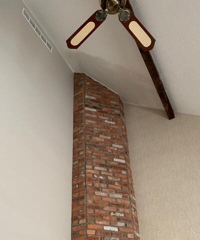 Drywall Doctor repaired this 25-foot-high ceiling crack next to a chimney after they had a water leak from the roof. Drywall Doctor experts used special scaffolding and safety precautions to ensure the repair was completed safely and correctly.