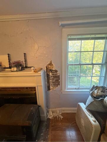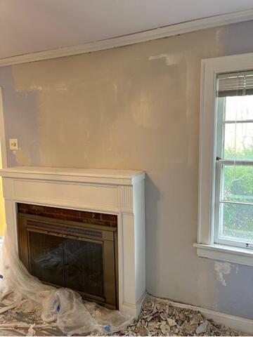 This home had severe damage to a plaster wall next to the fireplace, including cracking and loose material. Drywall Doctor removed all failing plaster, stabilized the area, and rebuilt the wall for a strong, long-lasting repair (with a warranty to back it!) The surface was then smoothed and blended seamlessly into the surrounding wall, leaving it clean, solid, and ready for paint with no signs of the previous damage.