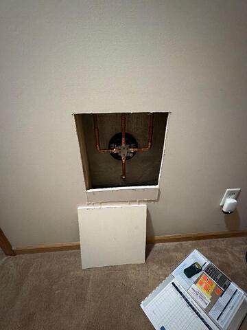 After having a plumbing cut-out, Drywall Doctor repaired the wall with expertise, leaving it smooth and ready to paint!