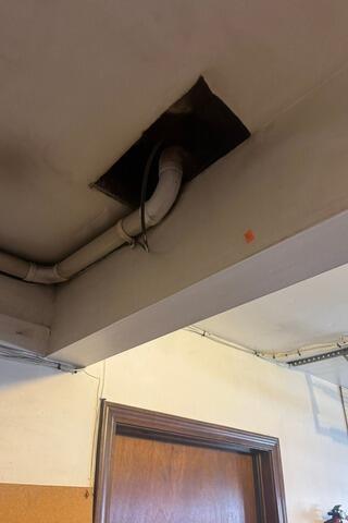 This client needed a patch in their garage ceiling to go around the pipe. Drywall Doctor came in, patched the hole and then paint matched for the finished product!