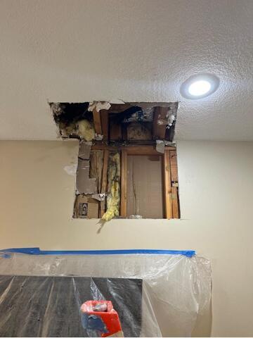 Drywall Doctor repaired a hole in this Olathe home, ensuring it would not come back. After the repair was completed, our expert painter refinished the entire ceiling better than ever!