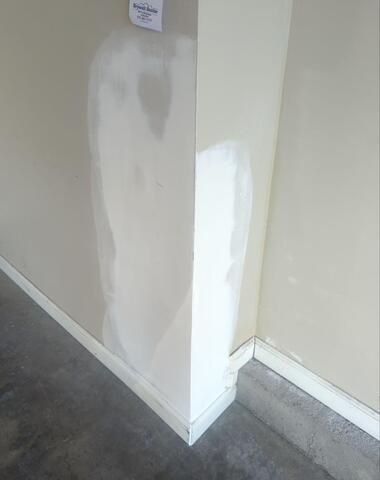 Drywall Doctor was called out to repair water damage in the corner of a customer’s garage. Our technician carefully cut out the damaged drywall, installed fresh material, and used our dust-free system to keep the area clean. Afterwards, the wall looked brand new. Another seamless repair with no mess left behind!