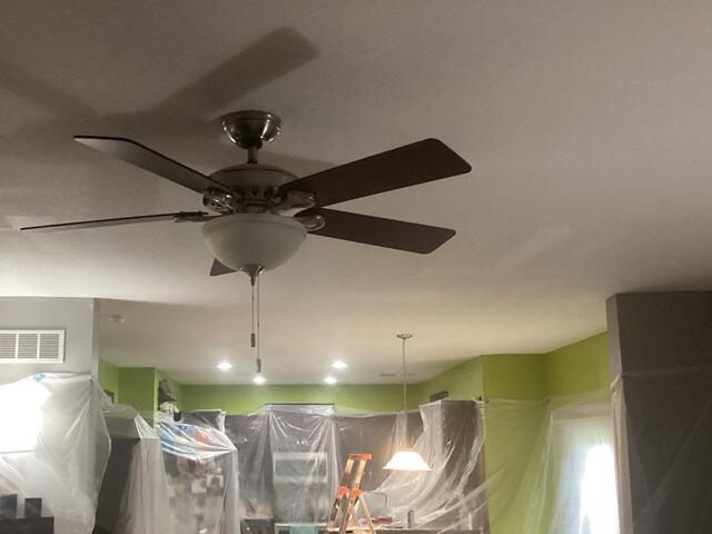 Drywall Doctor repaired the ceiling in this home using a dust-free system and ensured the surrounding areas were covered by plastic. After the repairs were complete, you would never be able to tell there was any work done!