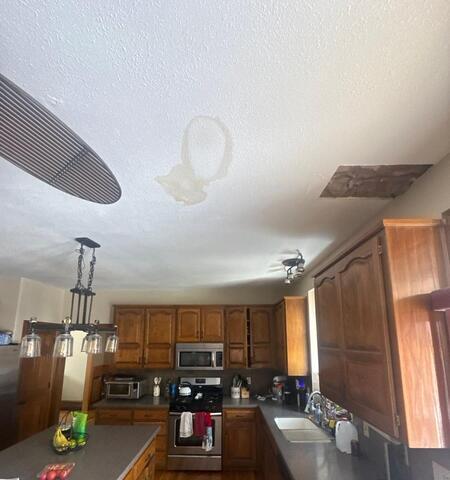 This customer called in Drywall Doctor to have their ceiling put back together. Repair technicians had the hole fixed and the knockdown texture matched perfectly!