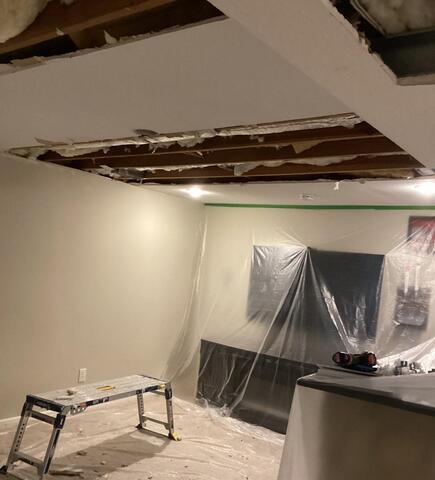 Drywall Doctor was called in when a customer had noticed a lump in her ceiling. Drywall Doctor repaired the ceiling and matched the texture perfectly!