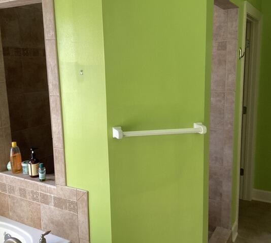 After having plumbing work done, there was a hole left in this customer's bathroom wall. Drywall Doctor came in and repaired the hole and matched the paint to finish the job!