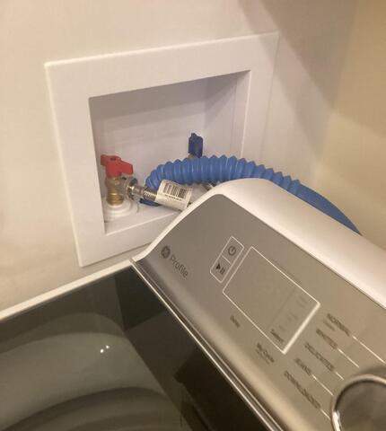Drywall Doctor repaired the wall after a Shawnee homeowner had their washer and dryer connections replaced