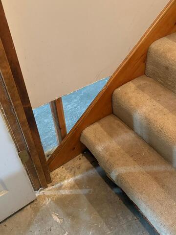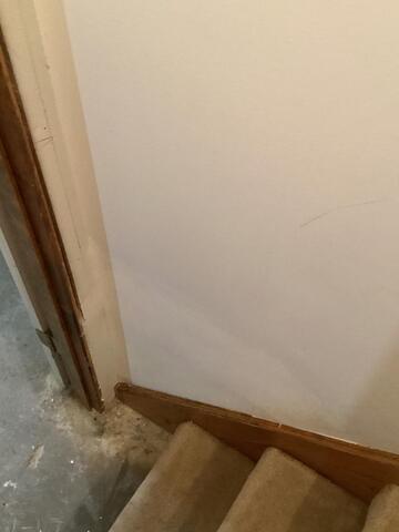 This wall was expertly repaired after the customer experienced flooding in their basement that damaged a portion of their drywall.