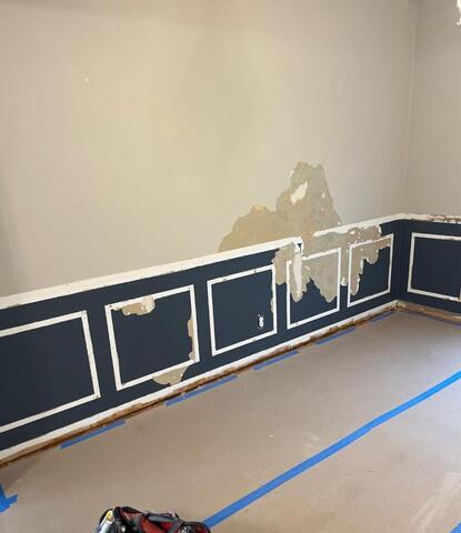 Drywall Doctor repaired the wall in this Overland Park home after wallpaper was removed. The repair expert skimmed the entire wall to make it look flawless and had it ready to be painted in no time!