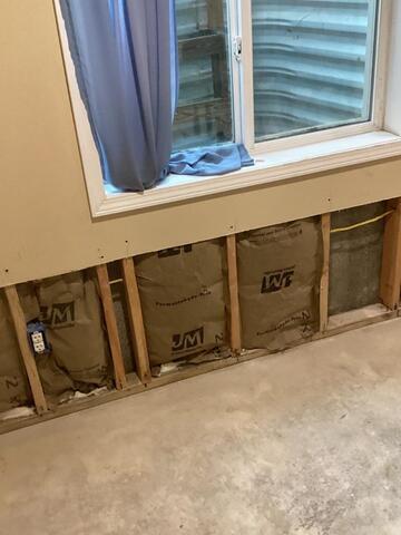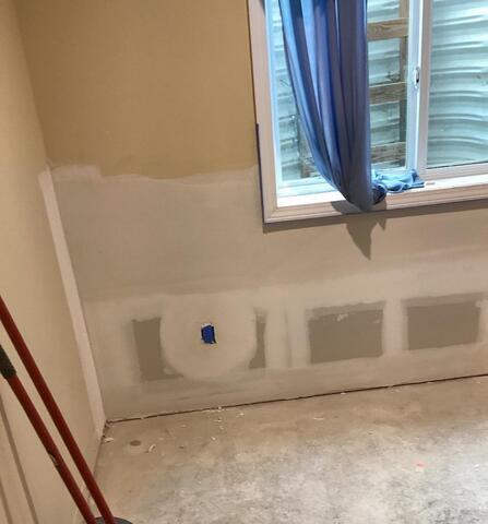 After a basement flood caused severe water damage, the drywall had to be cut out two feet up around the entire room. Drywall Doctor came in and expertly repaired the walls, restoring them to a flawless finish and making the space look brand new again; ready for paint!