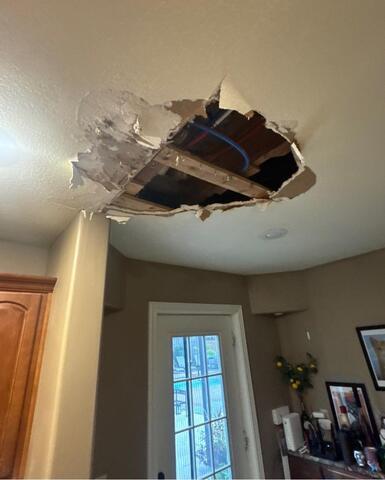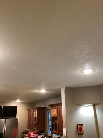 Drywall Doctor repaired the ceiling in this Fairway home and matched the knockdown texture perfectly, so that you could never tell that a repair was made.