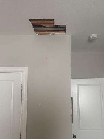 Drywall Doctor expert repair technician fixed the hole in the ceiling of this Shawnee home, then matched the texture perfectly, so no repair could ever be spotted!