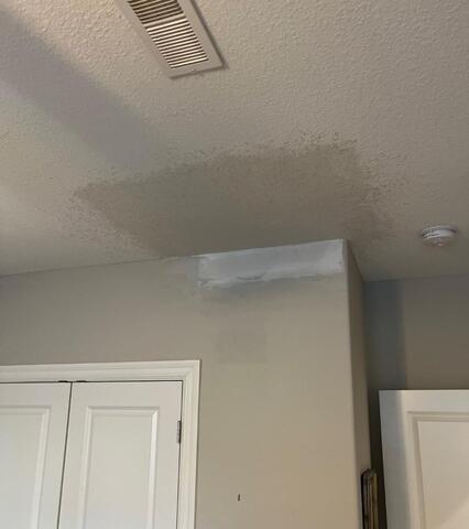 This ceiling was repaired with expertise and then texture matched to ensure a seamless blend.
