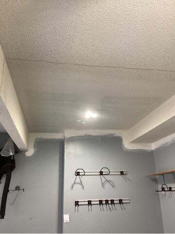 The ceiling in the exercise room of this Overland Park home had holes cut into it to make repairs. Drywall Doctor came in after the repairs were completed and repaired the ceiling perfectly!