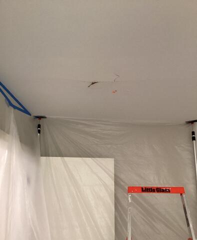 Drywall Doctor repaired the ceiling in this customer's bedroom after a contractor stepped through the ceiling.