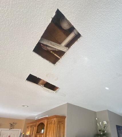 After a plumbing repair left a cutout hole in this customer's ceiling, they called Drywall Doctor to repair it! We fill the hole and matched the texture of the ceiling, which is now ready to be painted.