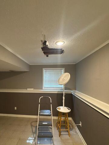 Drywall Doctor repaired the ceiling in this customer's home after her roof leaked water through, leaving water marks on the ceiling. Repair technicians had the ceiling looking brand new in no time!