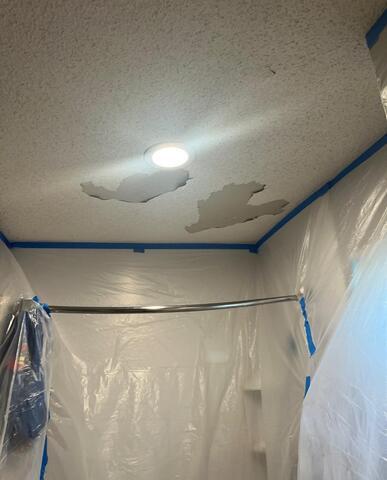 Drywall Doctor repaired the popcorn texture above this customer's shower and sealed it to ensure the texture would stay in place!