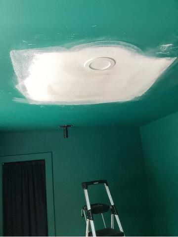 Drywall Doctor repaired the hole made in this customer's plaster ceiling with expertise and got it ready for a fresh coat of paint!