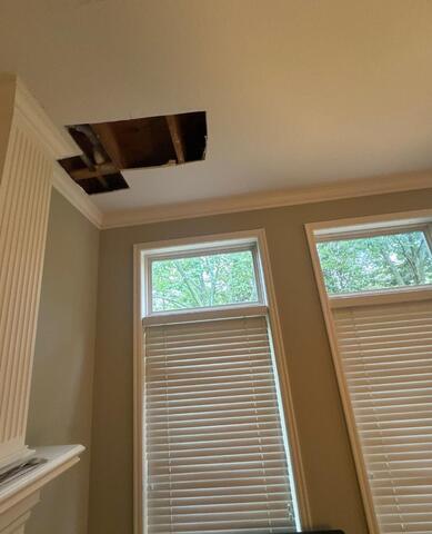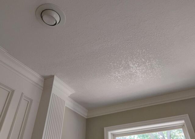 Drywall Doctor repaired the ceiling in this customer's living room. Drywall Doctor repair technician was careful to match the texture perfectly and by the end you would never be able to spot where the repair had been done!