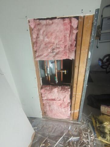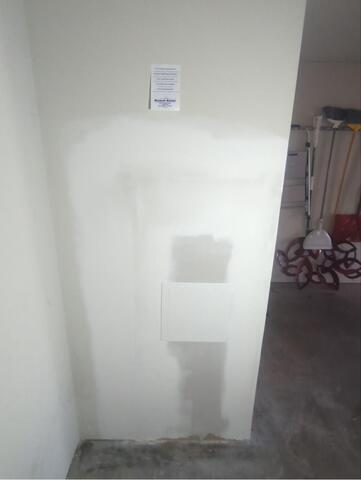 Drywall Doctor repaired the wall in a garage located in Independence, Missouri and installed an access panel.