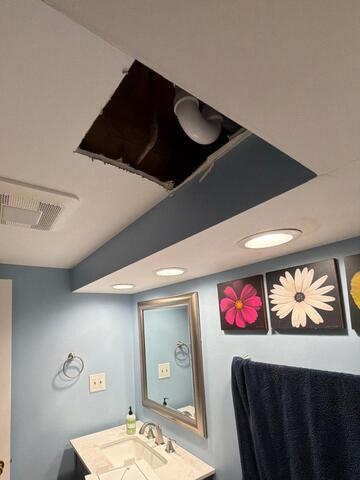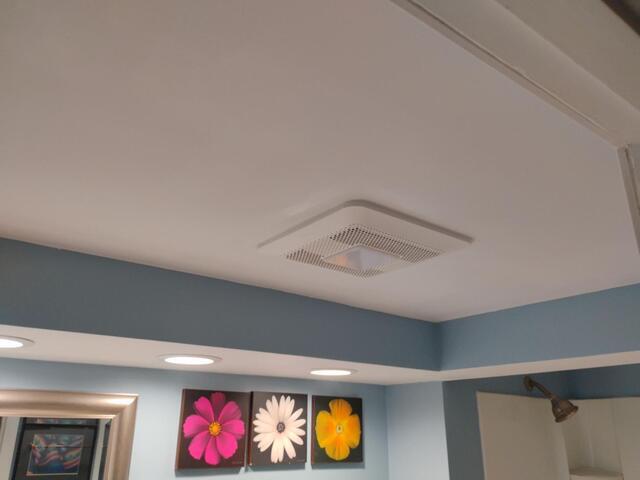 Drywall Doctor repaired the ceiling in the bathroom of this Overland Park home after plumbing work was completed.