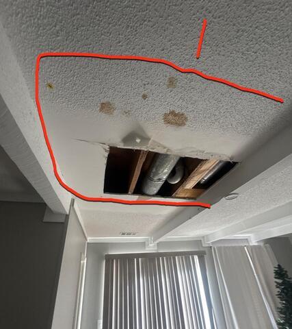 Drywall Doctor was called in after a cut was made in this homeowner's living room ceiling. Drywall Doctor repair technicians repaired the hole using a dust-fee machine and ensured to protect the surrounding areas from any debris that may get out. They then matched the popcorn perfectly!