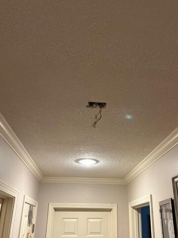Drywall Doctor repaired a damaged section of this knockdown ceiling. Our technicians expertly patched the area, matched the existing knockdown texture, and finished with a fresh coat of paint. The ceiling looks seamless again; like the damage was never there.